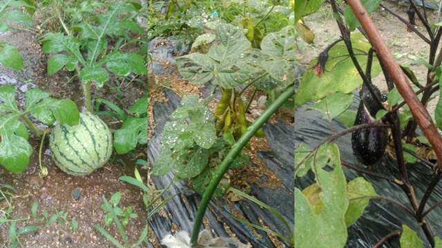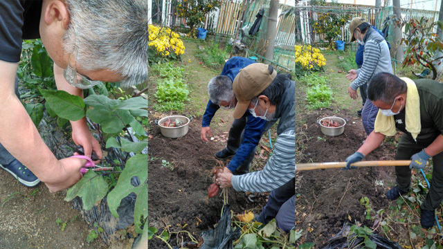 おきべ麦の家では施設内に畑があり、水やりや、収穫作業を行っております。